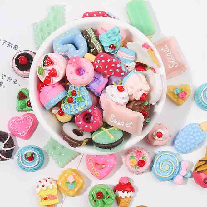 Set 10 charms các loại bánh kẹo để trang trí DIY ốp điện thoại, gương, cặp tóc...