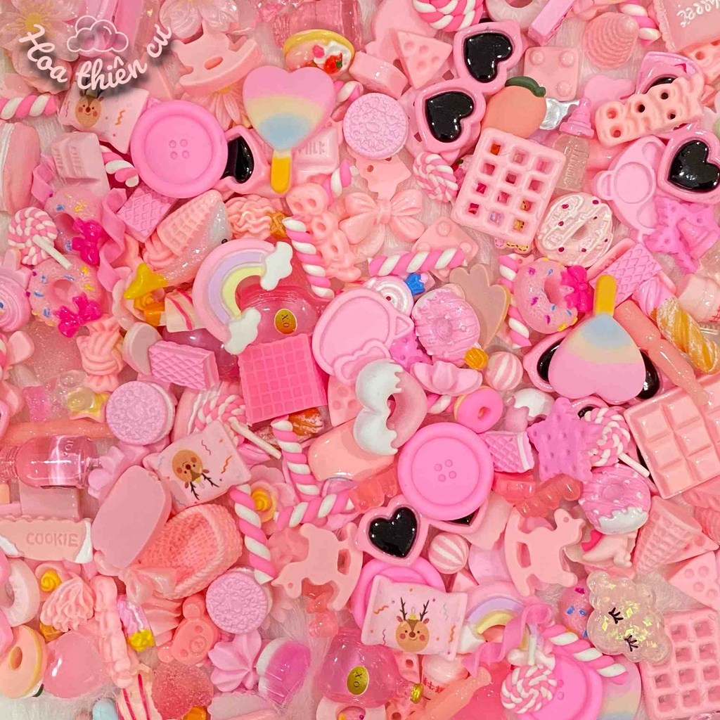 Điện Thoại & Phụ Kiện > Khác || Set 10 charms màu hồng nhạt để trang trí DIY ốp điện thoại, gương, cặp tóc...Còn hàng