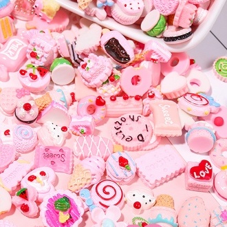 Set 10 charms màu hồng nhạt để trang trí DIY ốp điện thoại, gương, cặp tóc...