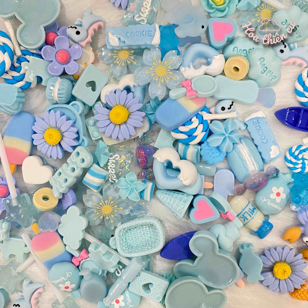 Điện Thoại & Phụ Kiện > Khác || Set 10 charms màu xanh biển trang trí DIY ốp điện thoại, gương, cặp tóc...Còn hàng