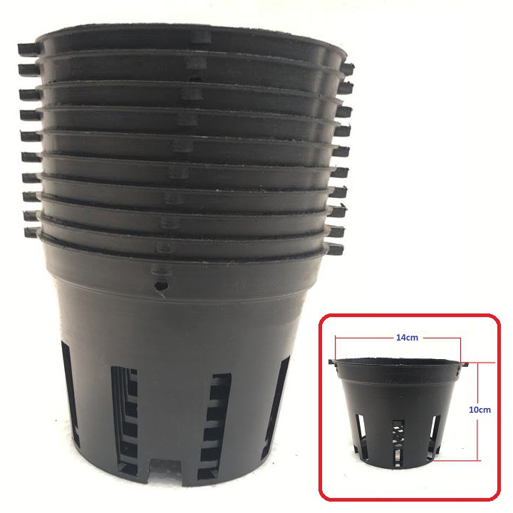 Set 10 chậu nhựa trồng lan số 2 đường kính 14cm cao 10cmChất liệu nhựa PVC bền, khó vỡ