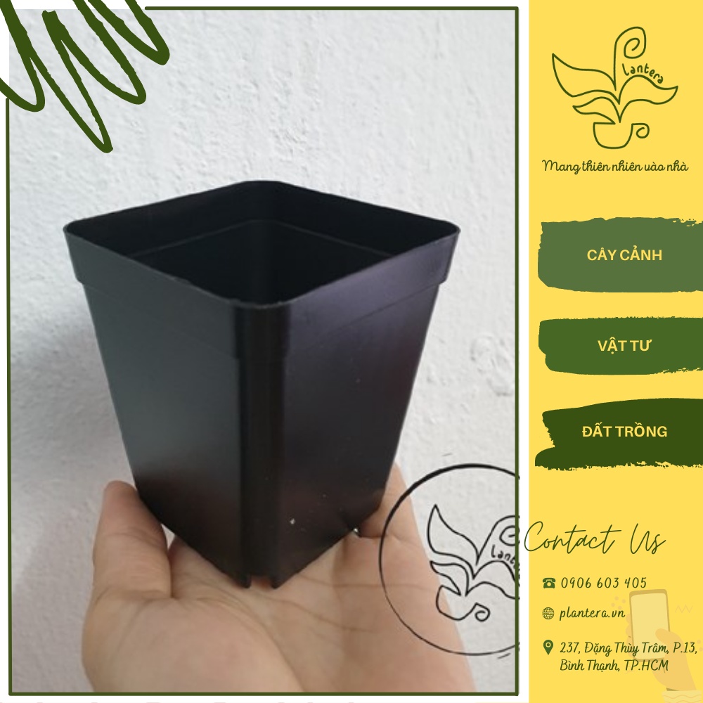 Kích thước: Miệng chậu hình vuông 7X7cm và chiều cao chậu 8cm