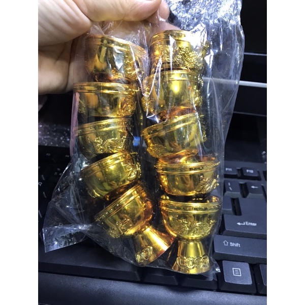 Nhà cửa & Đời sống > Bộ đồ bàn ăn > Tô || Set 10 Chung Si vàng Cúng nước (kt: 3,5*4cm)Còn hàng