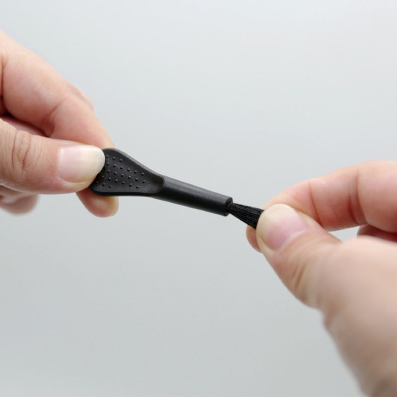 The cleaning brush is used to clean the smartphone charger port or 3.5mm headphone jack.