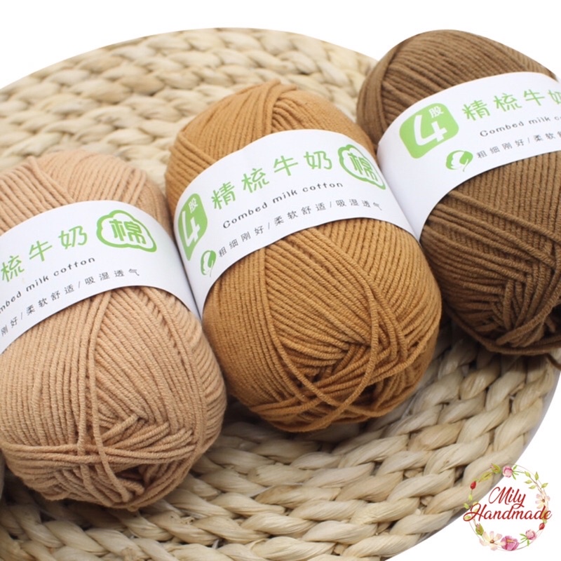 Len milk cotton combed 4ply-Là dòng len nội địa trung cao cấp milk cotton pha trộn giữa sợi acrylic và sợi cotton rất an toàn với trẻ nhỏ