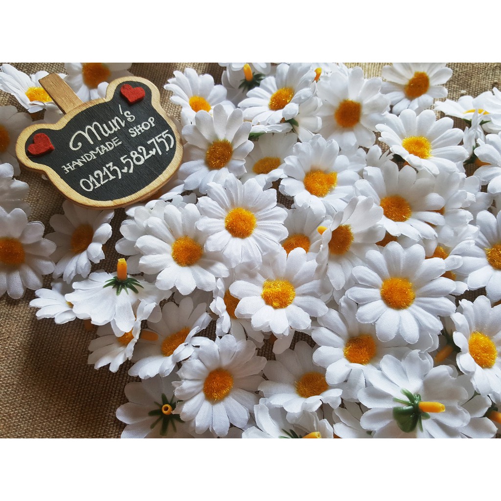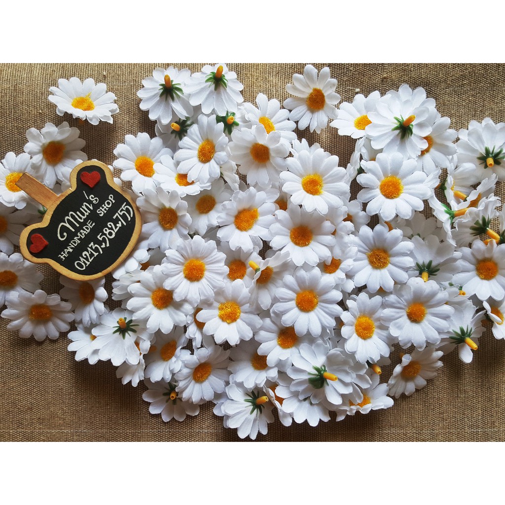 Nhà cửa & Đời sống > Trang trí nhà cửa > Hoa trang trí || Set 10 đầu hoa cúc vải cúc họa mi trắng / hồng (đính túi cói - túi tole, làm chậu hoa vải,...)Còn hàng