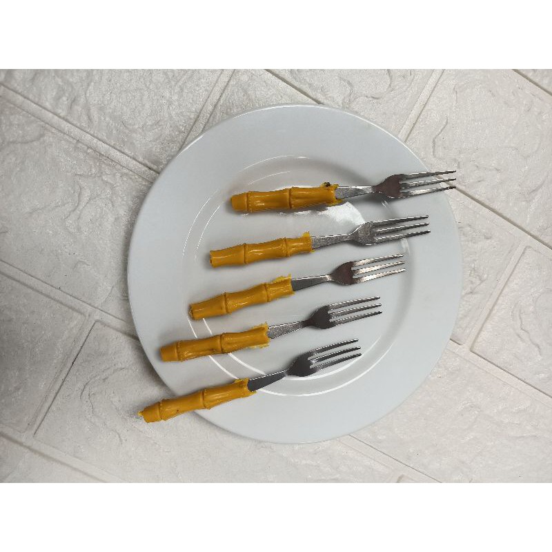 Nhà cửa & Đời sống > Bộ đồ bàn ăn > Bộ dao kéo || Set 10 dĩa inox xiên hoa quả thức ăn cán nhựa hình cây trúc dài 12.5cm tiện dụngCòn hàng