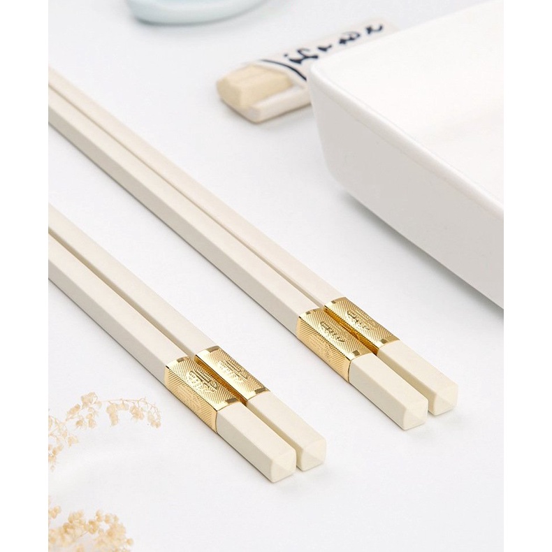 Nhà cửa & Đời sống > Dụng cụ nhà bếp > Khác || Set 10 đôi đũa ăn cơm trắng ngà, đầu đũa đính kim loại mạ vàng sang trọng, phù hợp cho bữa ăn gia đình, hàng quánCòn hàng