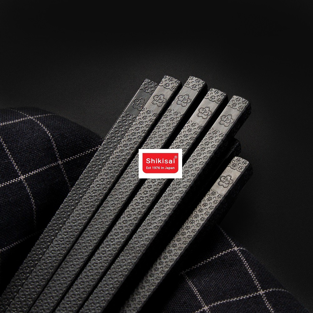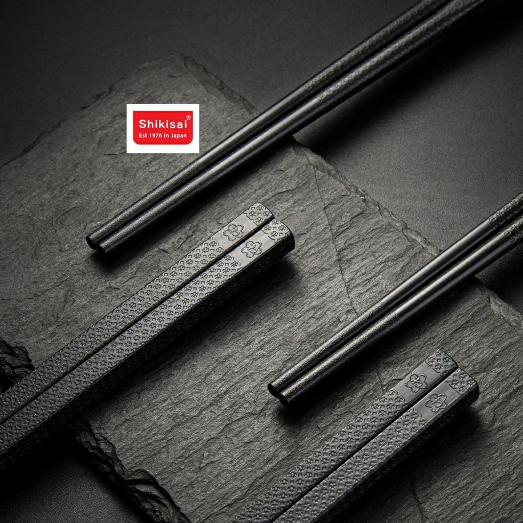 Đũa shikisai có màu đen được làm từ sợi thủy tinh tổng hợp.đũa có hình trụ trơn và họa tiết hoa anh đào đặ trưng của nhật bản....đầu đũa chống trơn trượt rất tốt