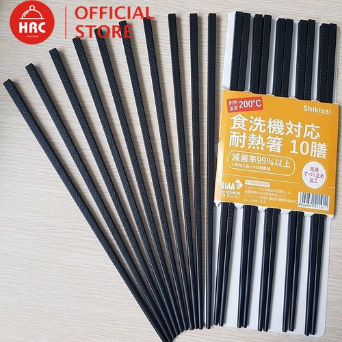Set 10 Đôi Đũa Hợp Kim Nhật Bản KHÁNG KHUẨN Shikisai Chịu Nhiệt, Chống Trượt