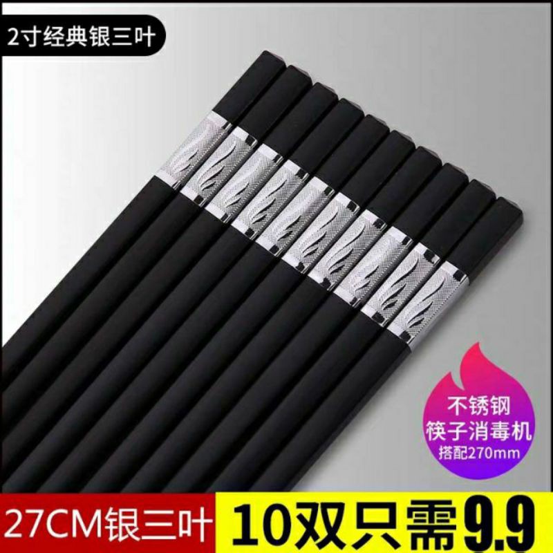 Sét 10 Đôi Đũa khảm BẠC chống mốc chống trơn Hàn Quốc sang trọng ( 10 đôi )