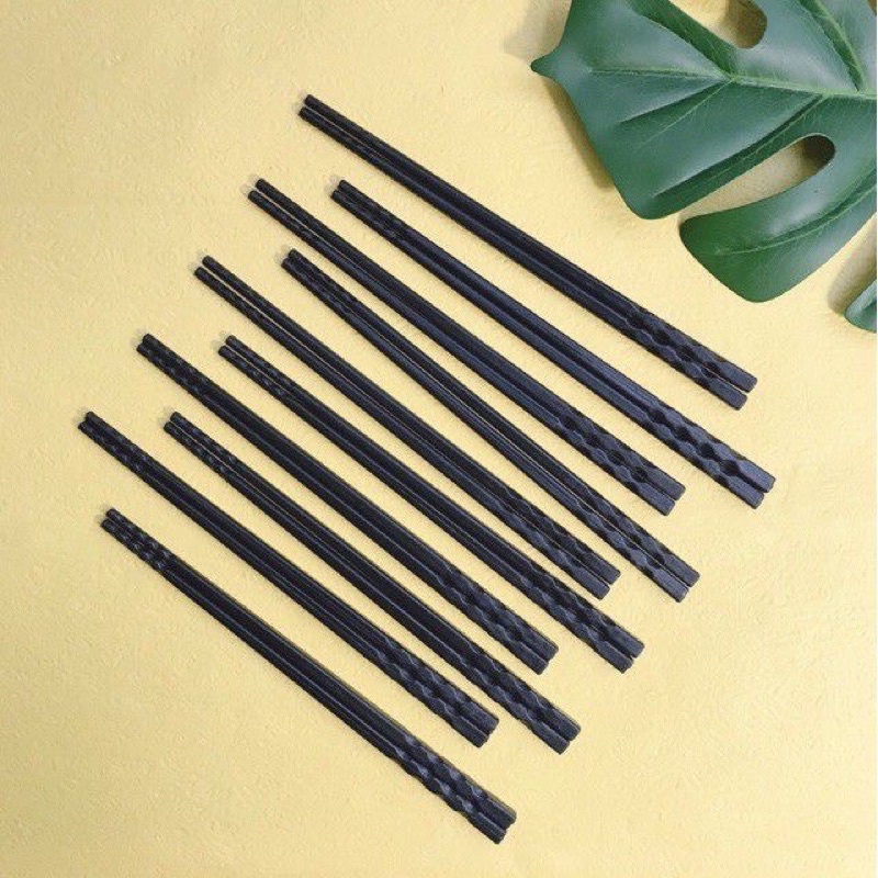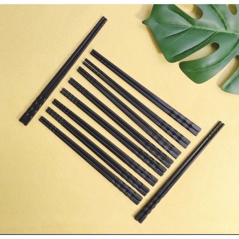 Sét 10 đôi đũa phíp đen melamine đầu xoắn chống trơn