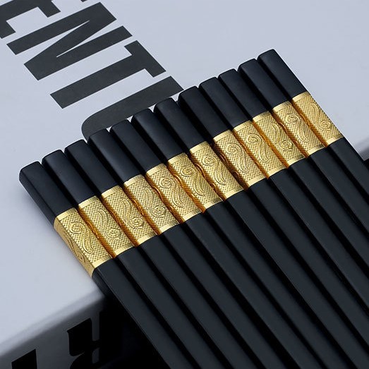 Set 10 Đũa Mạ Vàng Ăn Cơm Sang Trọng Chống Mốc, Chống Trơn Trượt