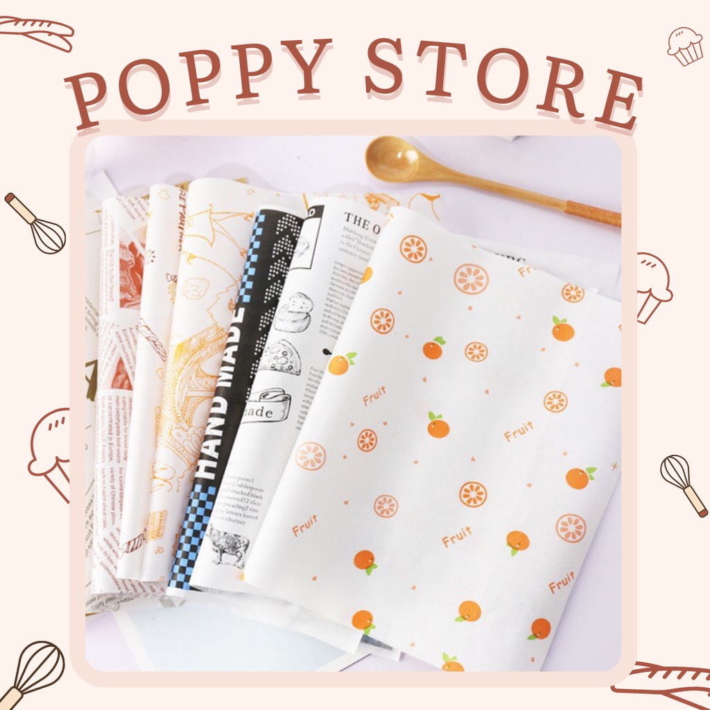 SET 10 GIẤY KHÔNG THẤM DẦU - POPPY STORE - LÓT BÁNH, GÓI SANDWICH , HAMBERGER