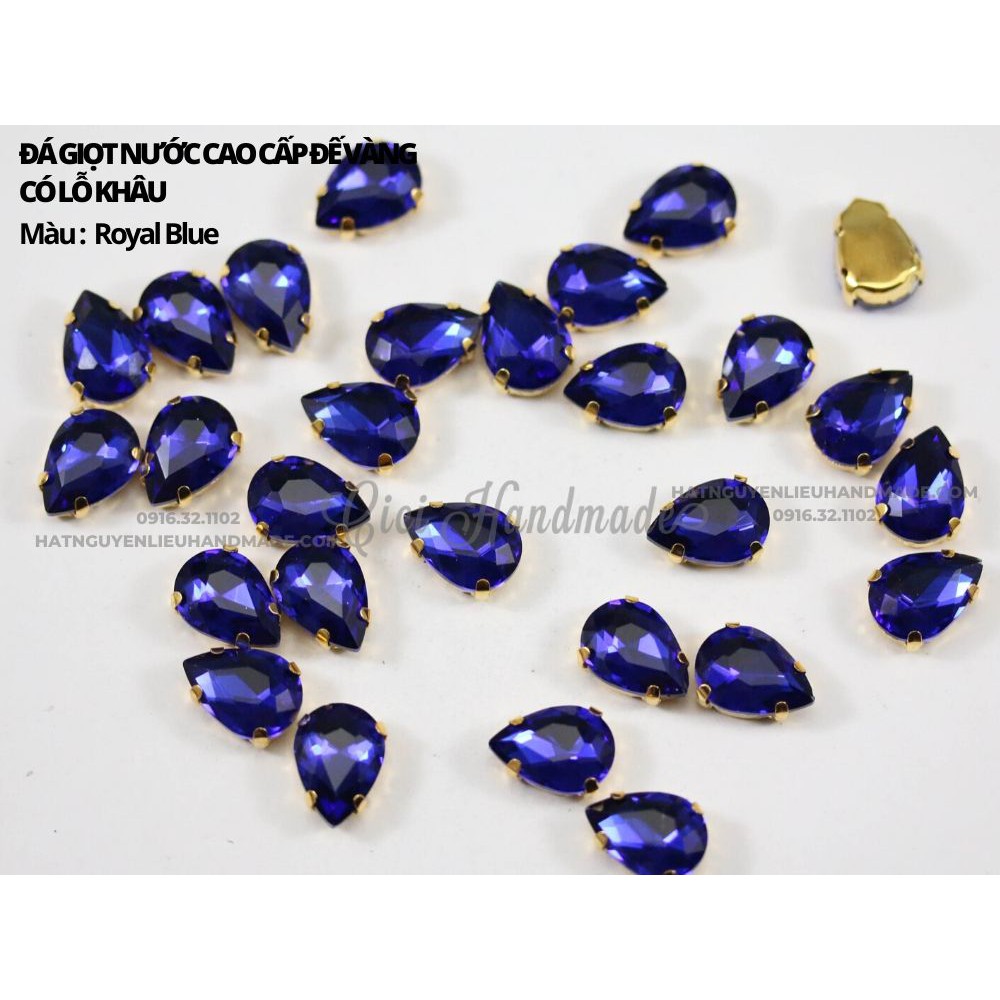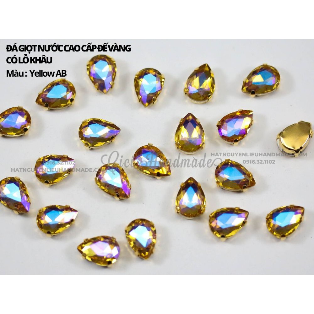 Đá giọt nước cao cấp đế vàng có lỗ khâu. Đá có độ bắt sáng tốt, kích thước đa dạng, phù hợp để đính kết thời trang, làm trang sức...Có 4 size: 7 x 10mm - 10 x 14mm - 13 x 18mm - 18 x 25mm.
