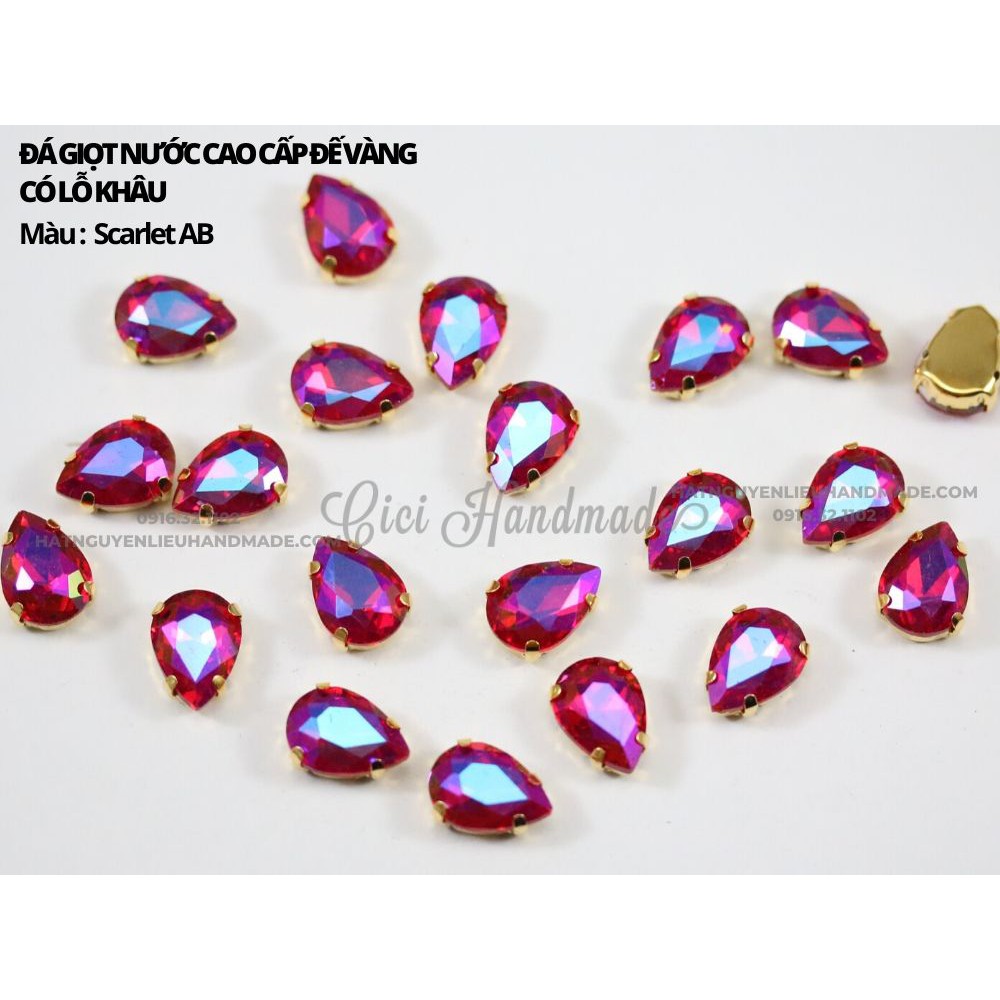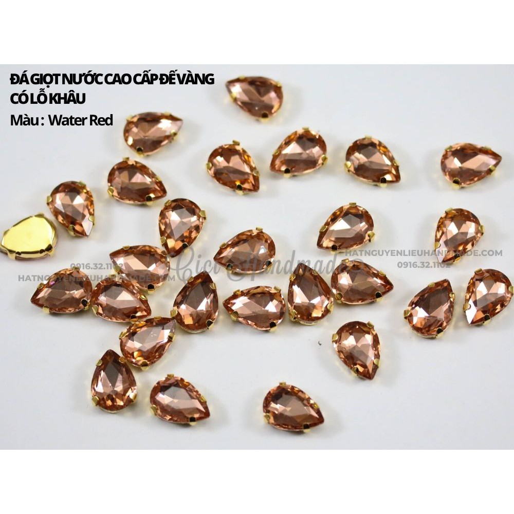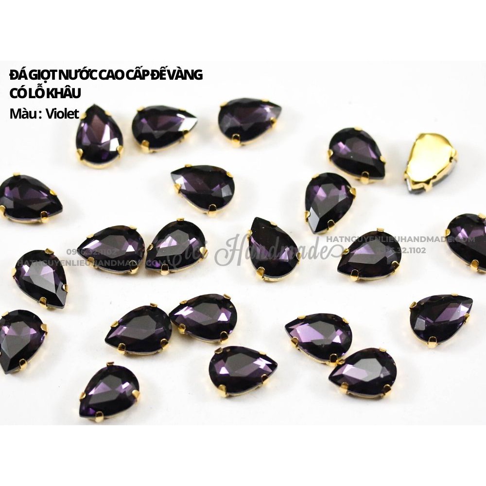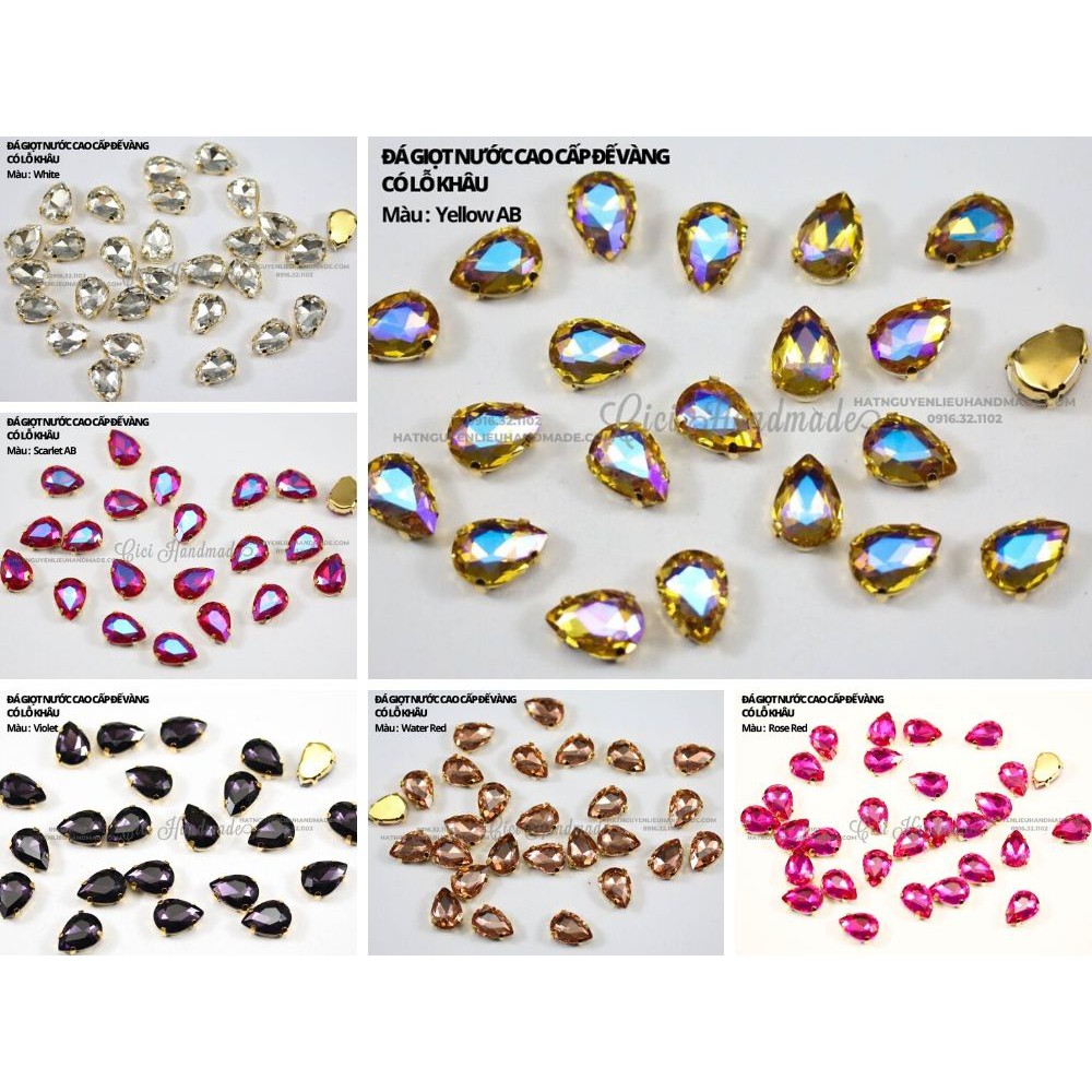 Set 10 hạt đá giọt nước cao cấp, đế vàng có lỗ khâu link 3/3 Cici Handmade chuyên hạt đá hạt pha lê hạt cườm hạt trang