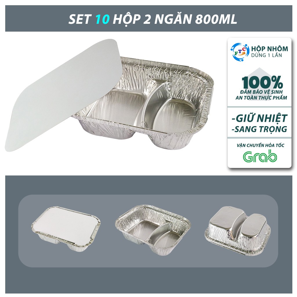 SET 10 HỘP NHÔM 2 NGĂN 800ML (KHAY GIẤY BẠC CÓ NẮP) - FOOD ALUMINUM BOX - ĐỰNG THỰC PHẨM DÙNG 1 LẦN