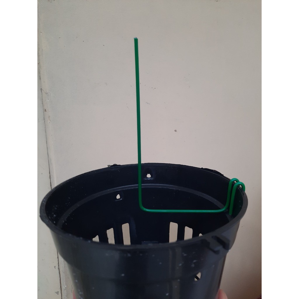 Que kẹp chậu giữ lan loại chưa uốn được làm kẽm bọc nhựa,đường kính 4 mm ,cho thời gian sử dụng lâu năm.