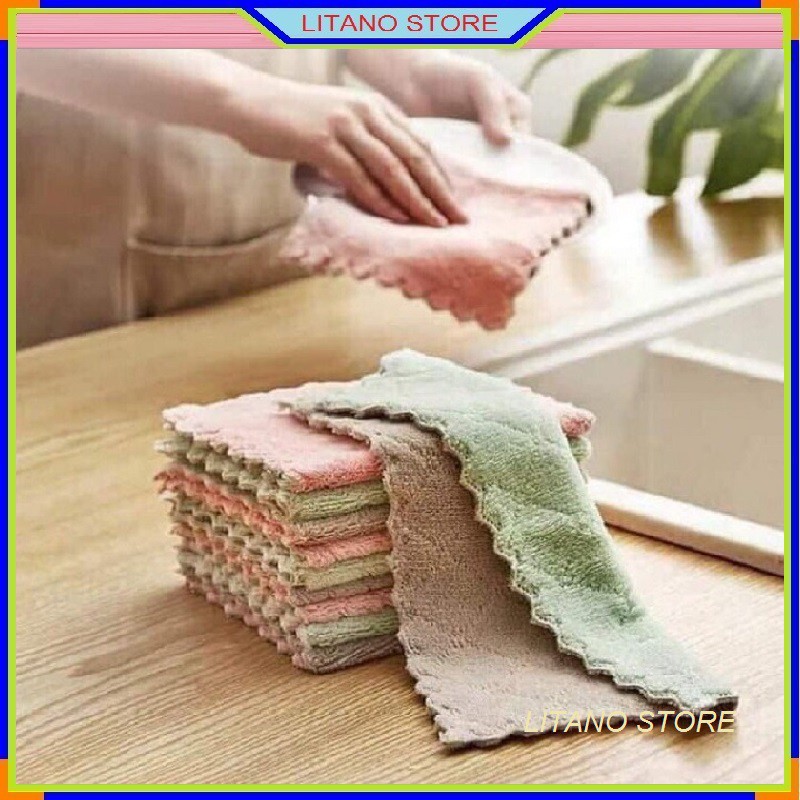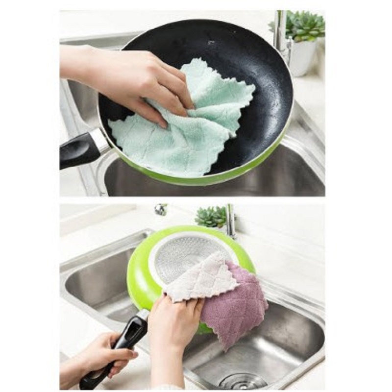 - Khăn Lau Bếp Đa Năng 2 Mặt làm sạch vết bẩn, hiệu quả trong việc lau sạch và làm khô chén dĩa, ly tách,..