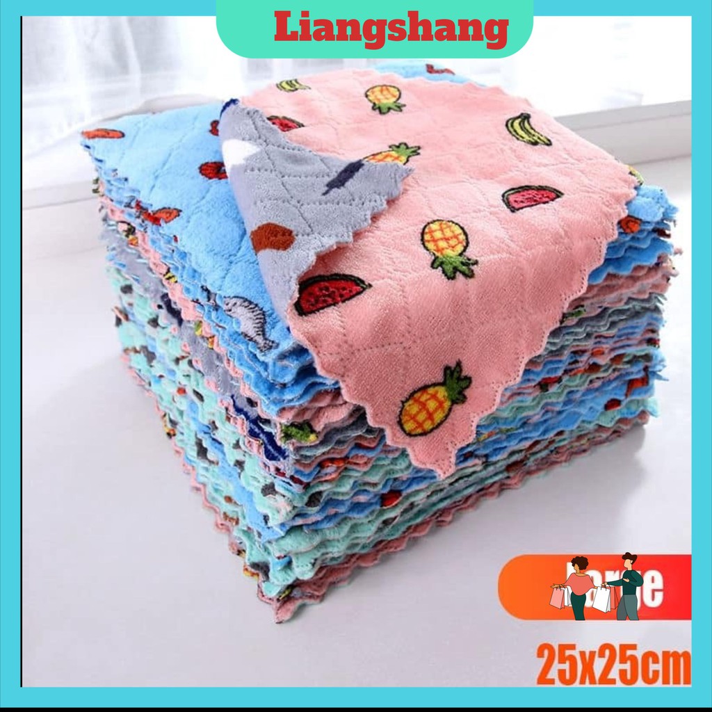 Set 10 Khăn Lau 2 Mặt Họa Tiết Hoa Quả 25x25cm Siêu Thấm Hút Nước - Khăn Lau Lông CừuKHĂN ĐA NĂNG LAU BẾP MẪU MỚI !!!!