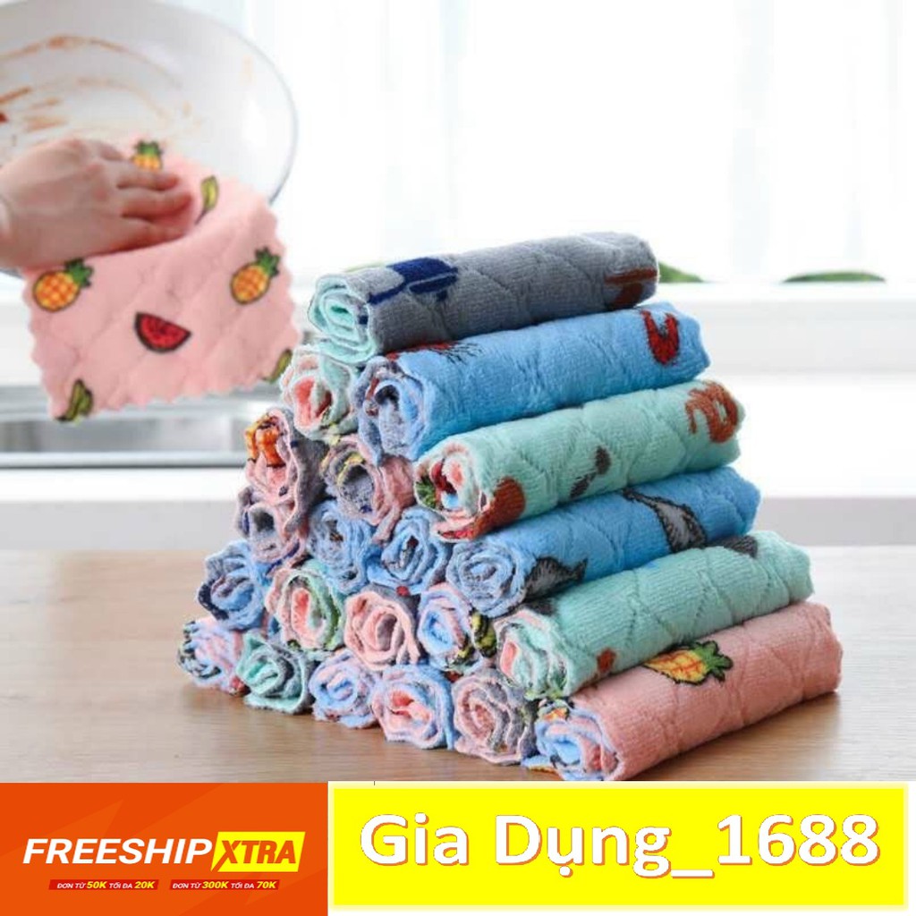 Set 10 Khăn Lau 2 Mặt Họa Tiết Hoa Quả 25x25cm Siêu Thấm Hút Nước - Khăn Lau Lông CừuKHĂN ĐA NĂNG LAU BẾP MẪU MỚI !!!!