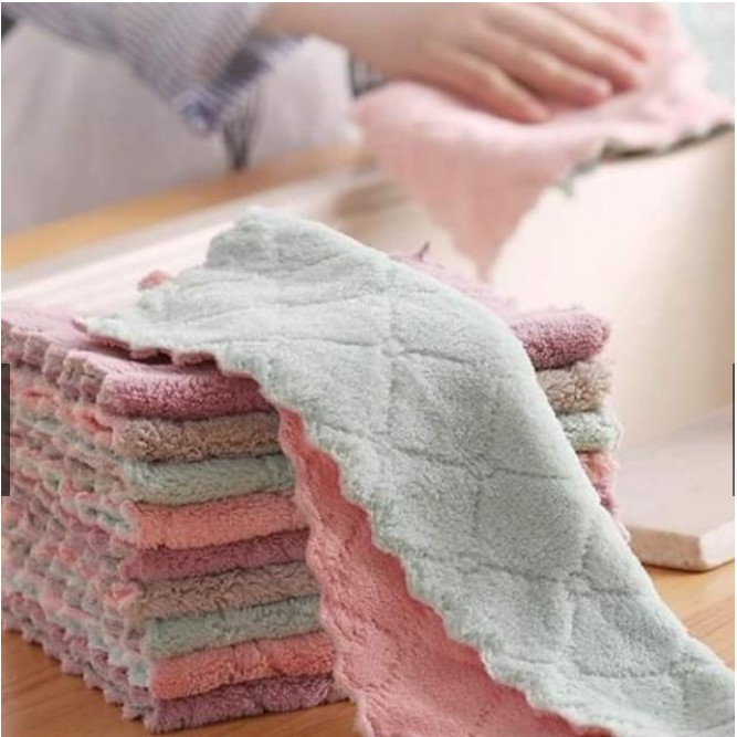 - Khăn Lau Bếp Đa Năng 2 Mặt làm sạch vết bẩn, hiệu quả trong việc lau sạch và làm khô chén dĩa, ly tách,..