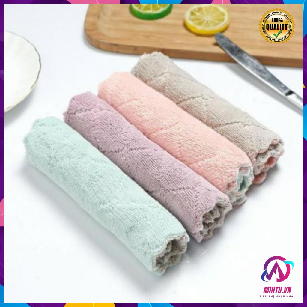 Set 10 Khăn Lau Bếp Đa Năng Mềm Mại Thấm Hút Tốt, Khăn Lau Đa Năng Nhà Bếp 2 Mặt Chống Dính Dầu Mỡ Nhanh Khô
