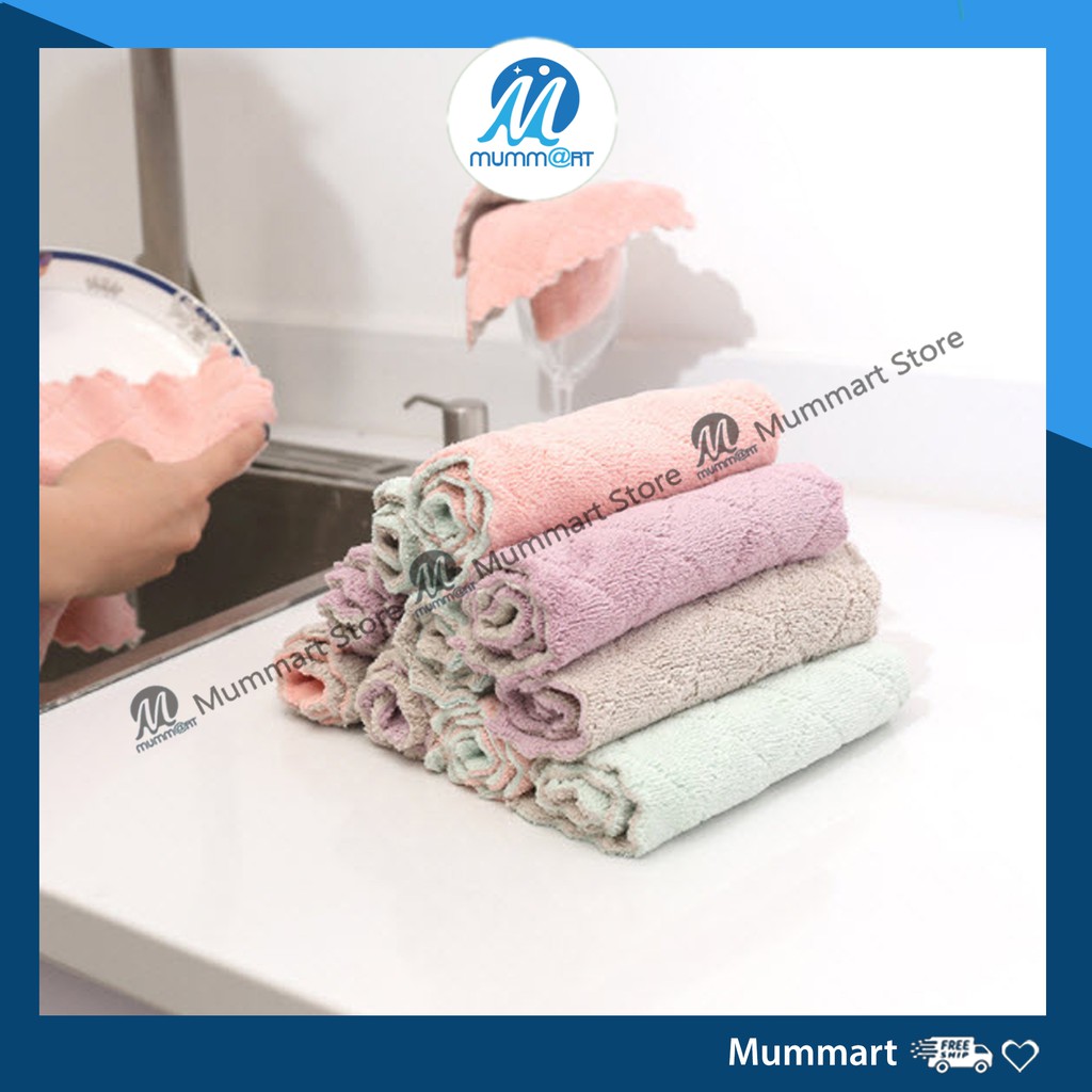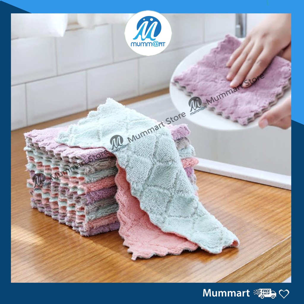 Set 10 khăn lau đa năng hai mặt thấm hút nước, vắt nhanh khô, không rụng lông, lau sạch chén bát và bếp - Mummart