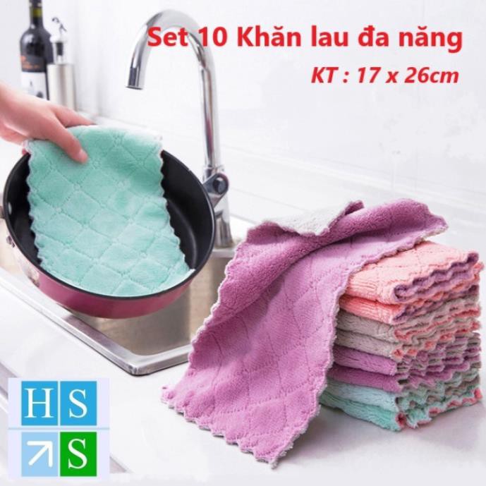 SET 10 Khăn lau đa năng , lau chén bát, lau tay, , lau bàn ghế, lau bếp .... mềm mại, thấm hút tốt (Mầu giao ngẫu nhiên)