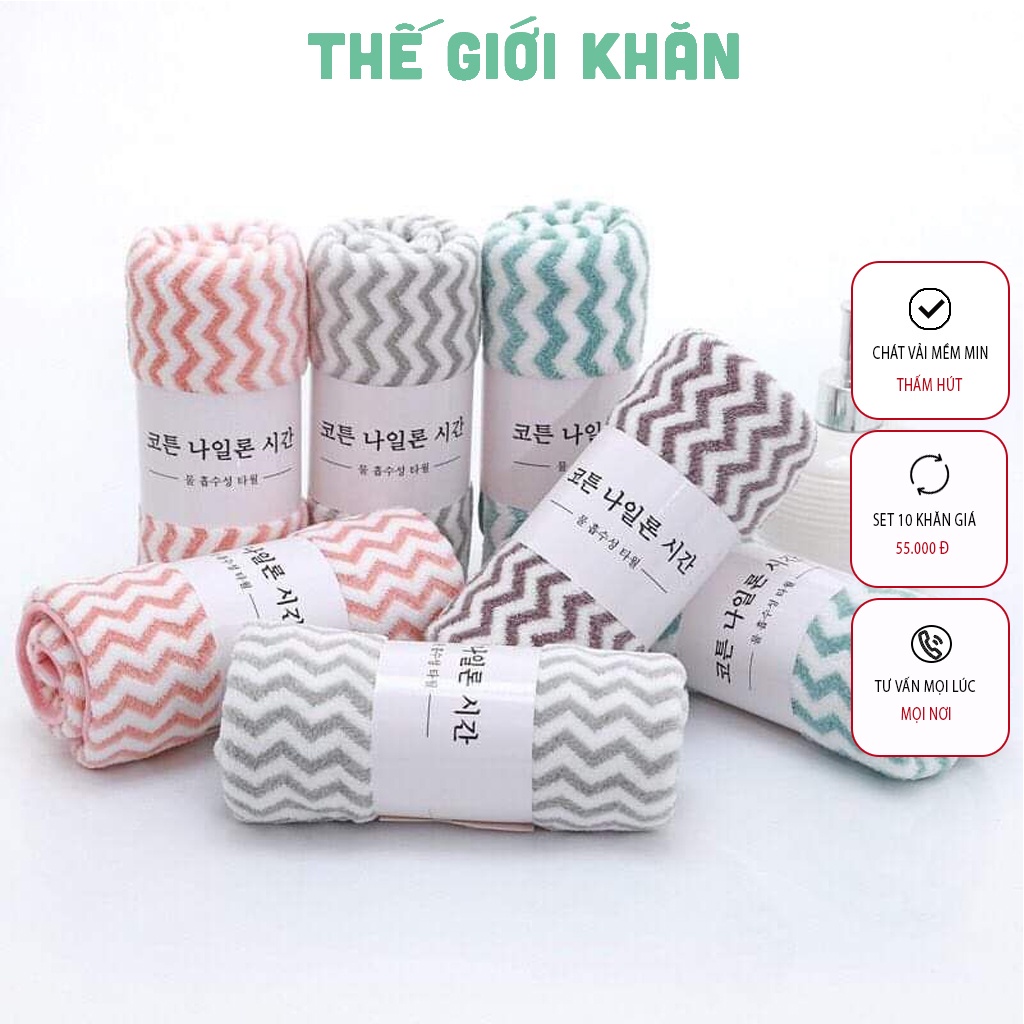 Giới thiệu Set 10 khăn mặt Hàn kẻ, mềm mịn, thấm hút tốt 30x50cm