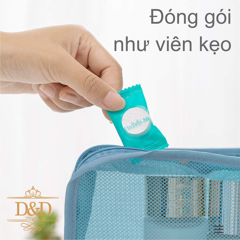 - Khăn được nén nhỏ gọn dạng viên kẹo xinh xắn, vệ sinh, tiện lợi, dễ dàng mang theo.