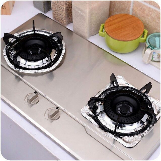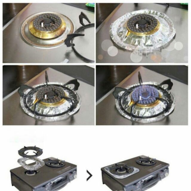 Dùng lót dưới kiềng bếp gaTrong quá trình nấu nướng đồ ăn hay bị rơi xuống bếp, giấy bạc giúp giữ bếp sạch sẽ, không phải lau chùi kiềng nhiều