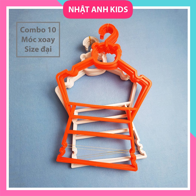 Giới thiệu Set 10 Móc Bộ Cổ Xoay Size To Trẻ Em, nhựa dẻo, màu trắng và màu cam (29 x 47cm)