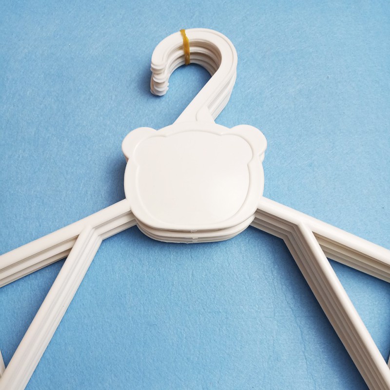 - Mô tả: Sản phẩm bằng nhựa dẻo, dày dặn và chắc chắn, tạo hình mặt gấu đáng yêu, phù hợp để treo cả bộ quần và áo của trẻ em từ 5 tuổi. Sản phẩm sử dụng trong các shop quần áo trẻ em hoặc trong các gia đình.