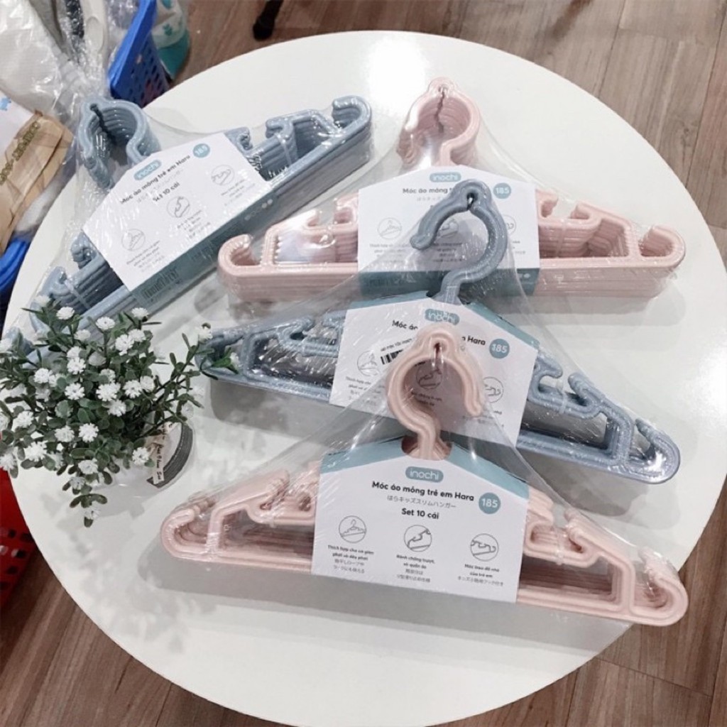 SET 10 MÓC NHỰA EM BÉ CAO CẤP INOCHI HARA 185 / Móc treo quần áo trẻ em set 10 Chiếc