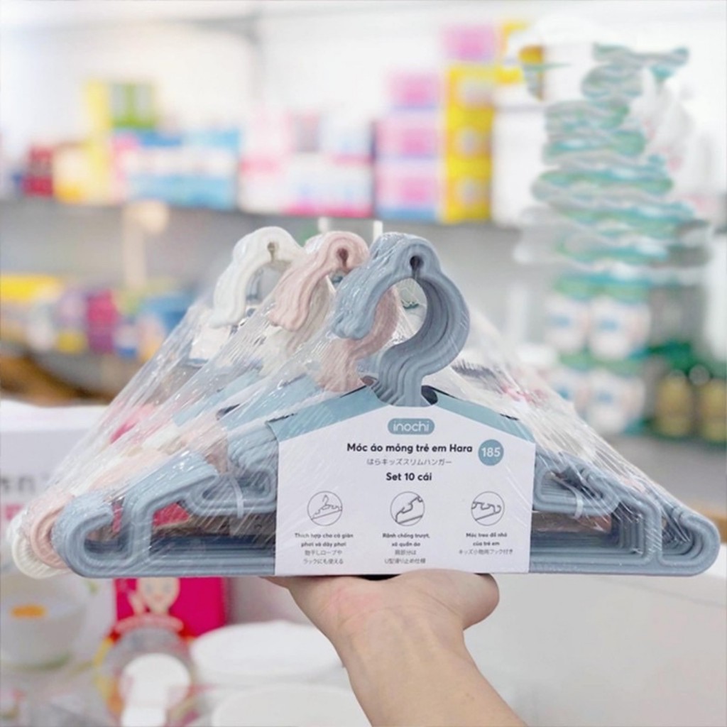 Giới thiệu SET 10 MÓC NHỰA EM BÉ CAO CẤP INOCHI HARA 185 / Móc treo quần áo trẻ em set 10 Chiếc