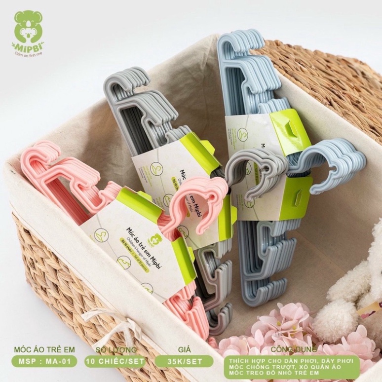 Set 10 Móc Treo Đồ, Treo Quần Áo Cho Bé Mipbi Cao Cấp