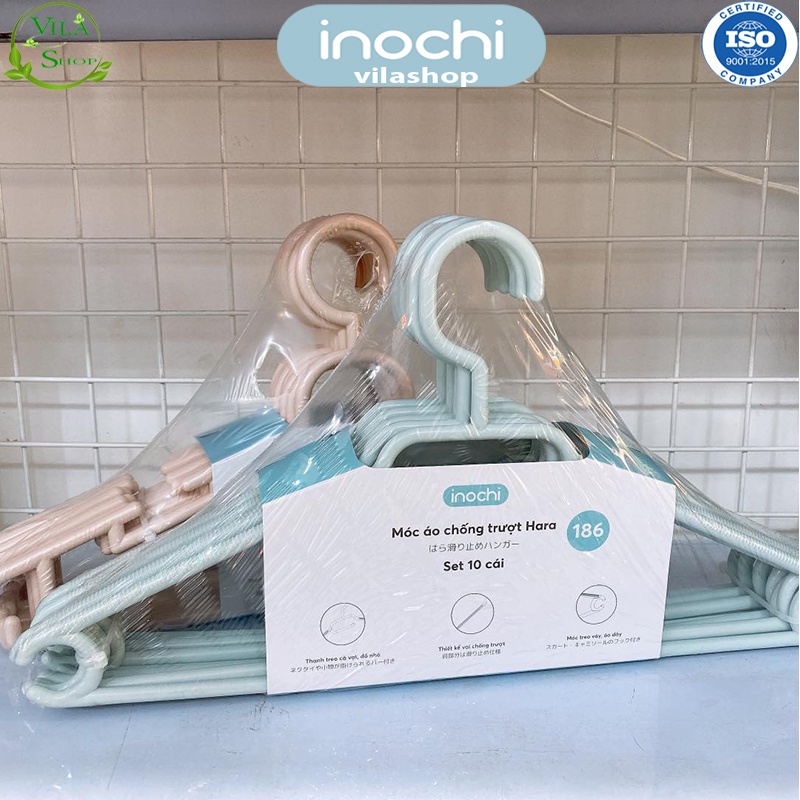 [ Set 10 ] Móc Treo Quần Áo, Móc Quần Áo Chống Trượt Hara 186, Bộ Sưu Tập Móc Quần Áo Người Lớn Nhựa Cao Cấp Inochi