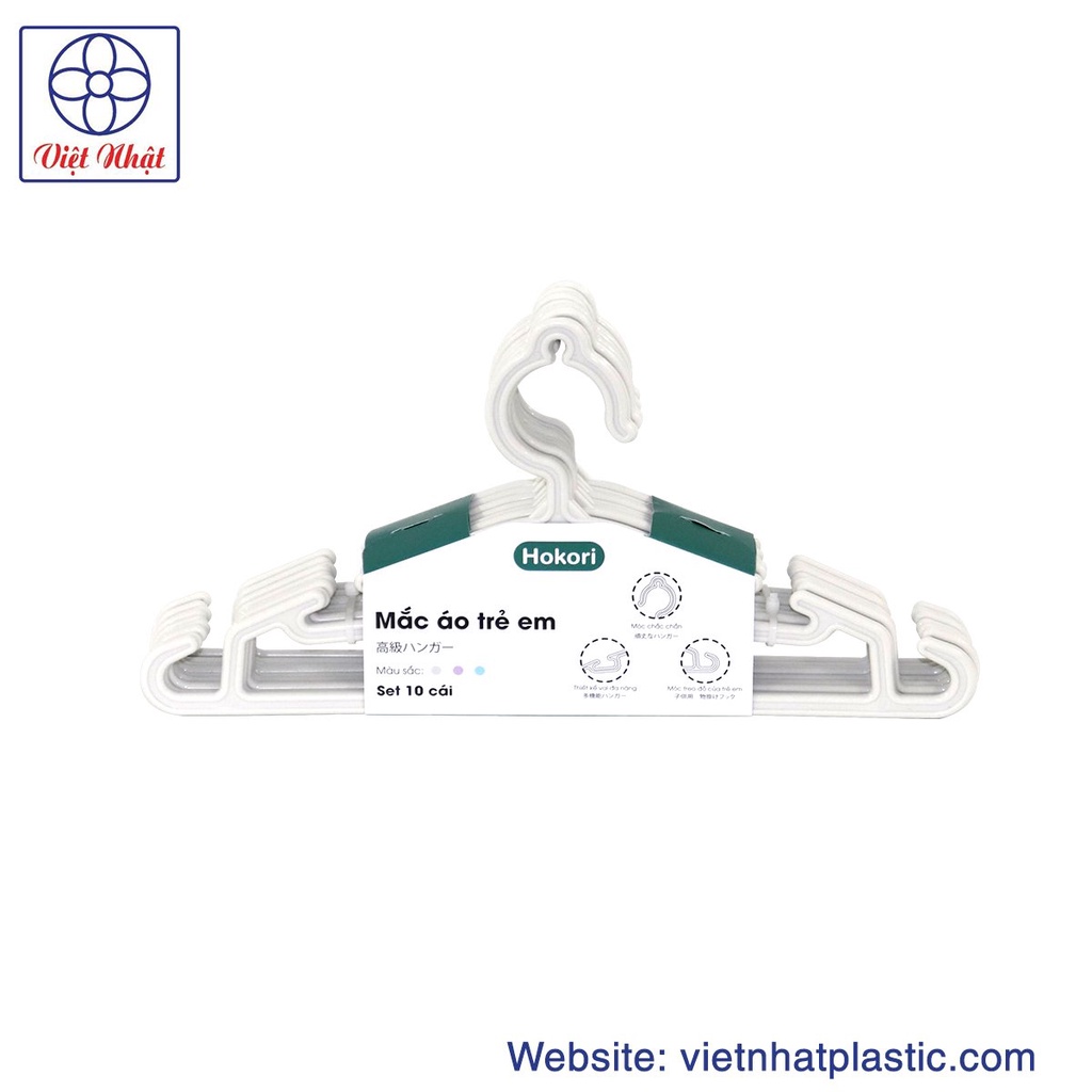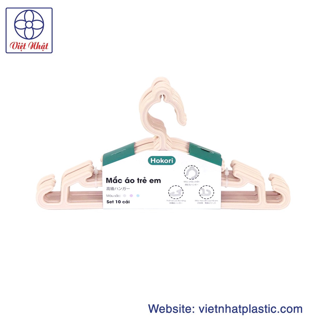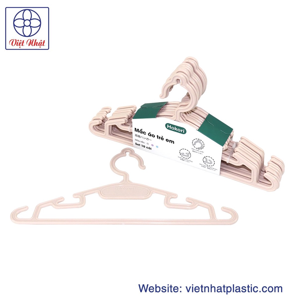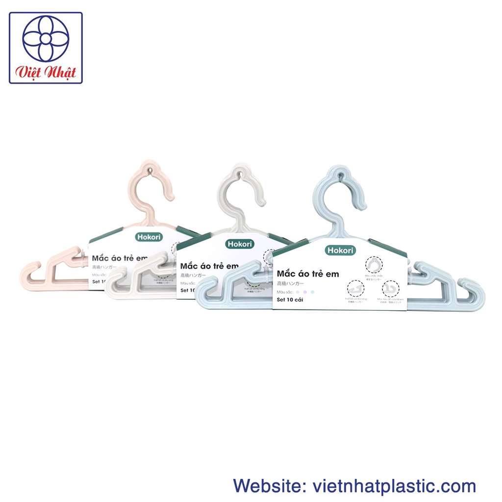 Set 10 móc treo quần áo trẻ em Hokori cao cấp (2830) nhựa Việt Nhật -Mắc nhũ treo quần áo, móc phơi đồ