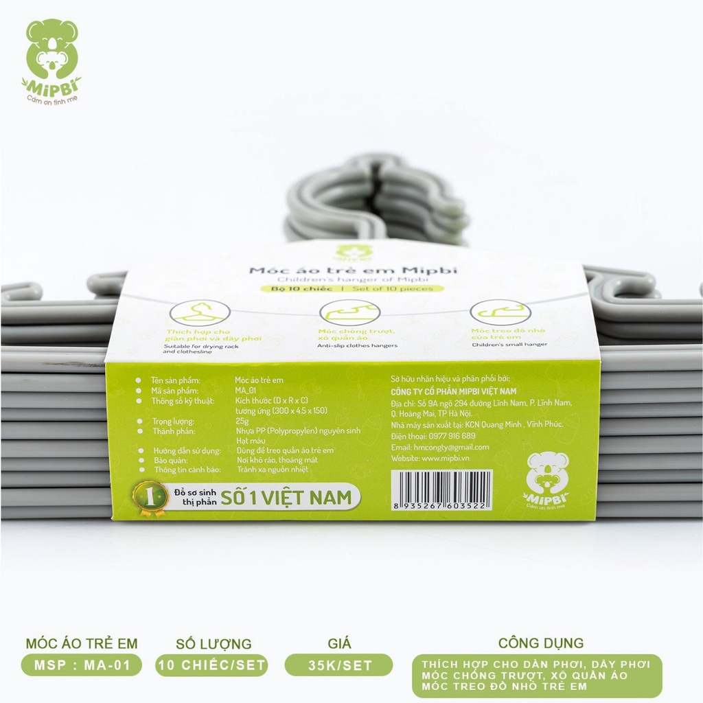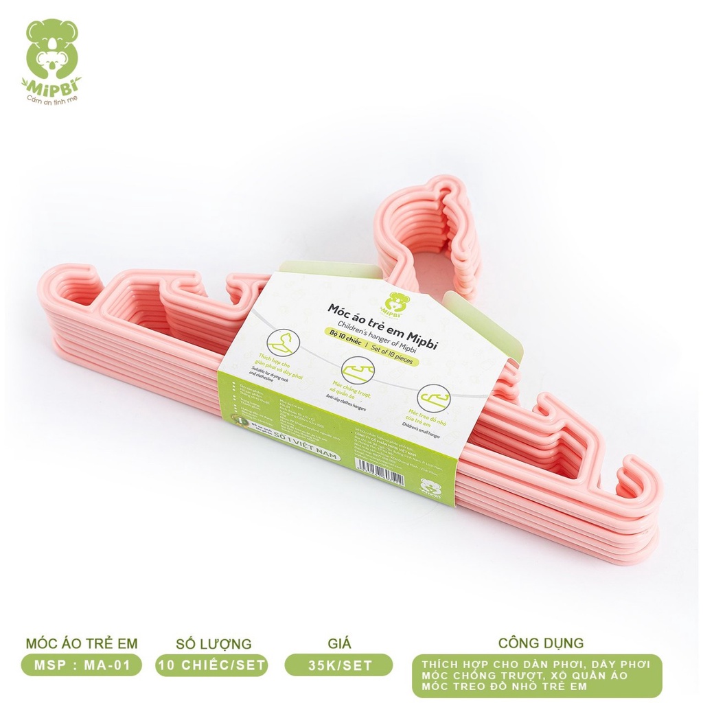 Set 10 móc treo trẻ em MIPBI móc áo nhựa