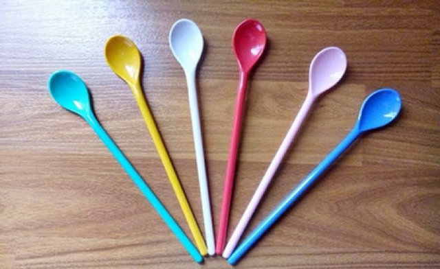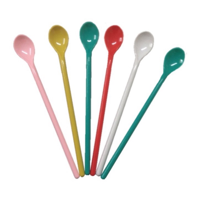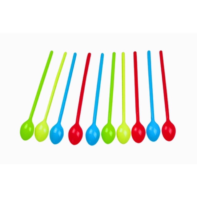 10 cái muỗng cán dài nhựa đủ màu 20 cm sinh tố trà sữa cà phê cocktail - spoonĐóng gói: 10 cái muỗng 1 bao