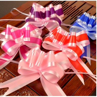 SET 10 NƠ RUY BĂNG HAI MÀU BẢN 5CM DẠNG RÚT, NƠ RÚT GÓI QUÀ, PHỤ KIỆN TRANG TRÍ