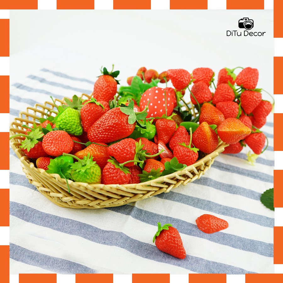 Giới thiệu Set 10 quả dây tây chụp ảnh - Dâu tây decor chụp hình, đi picnic - Ditu Decor