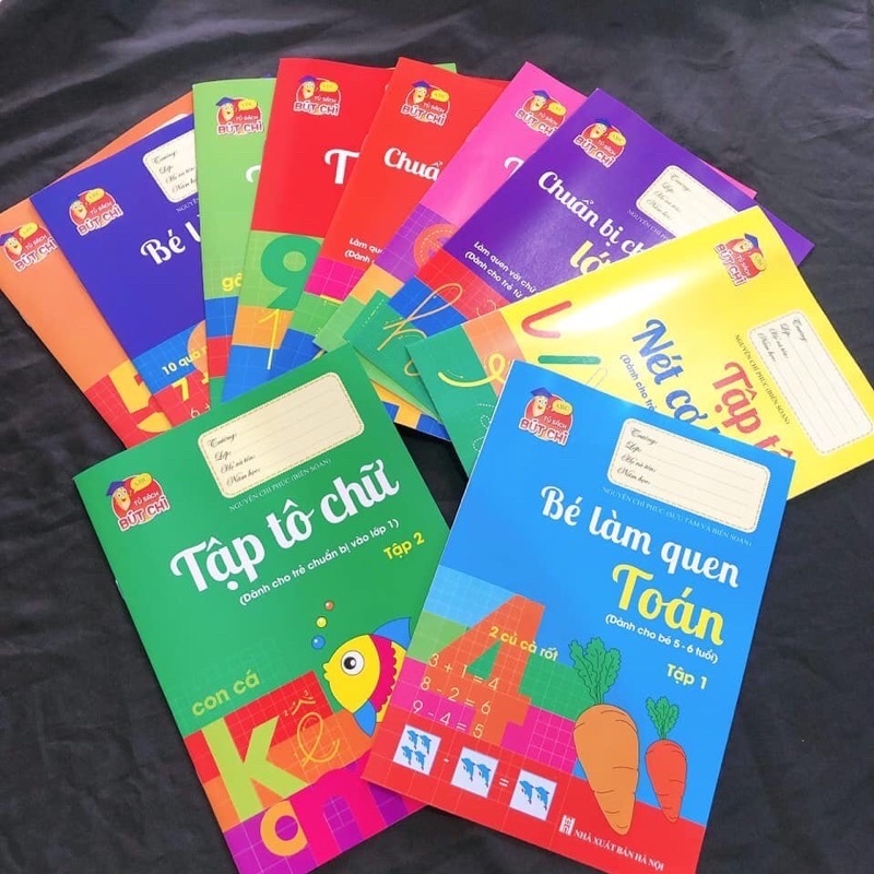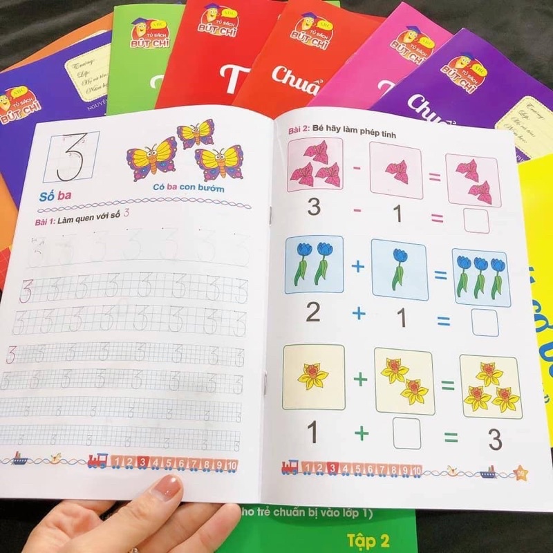 - Một set gồm 10 quyển vở tập tô số, tô chữ, tập các nét cơ bản cho bé