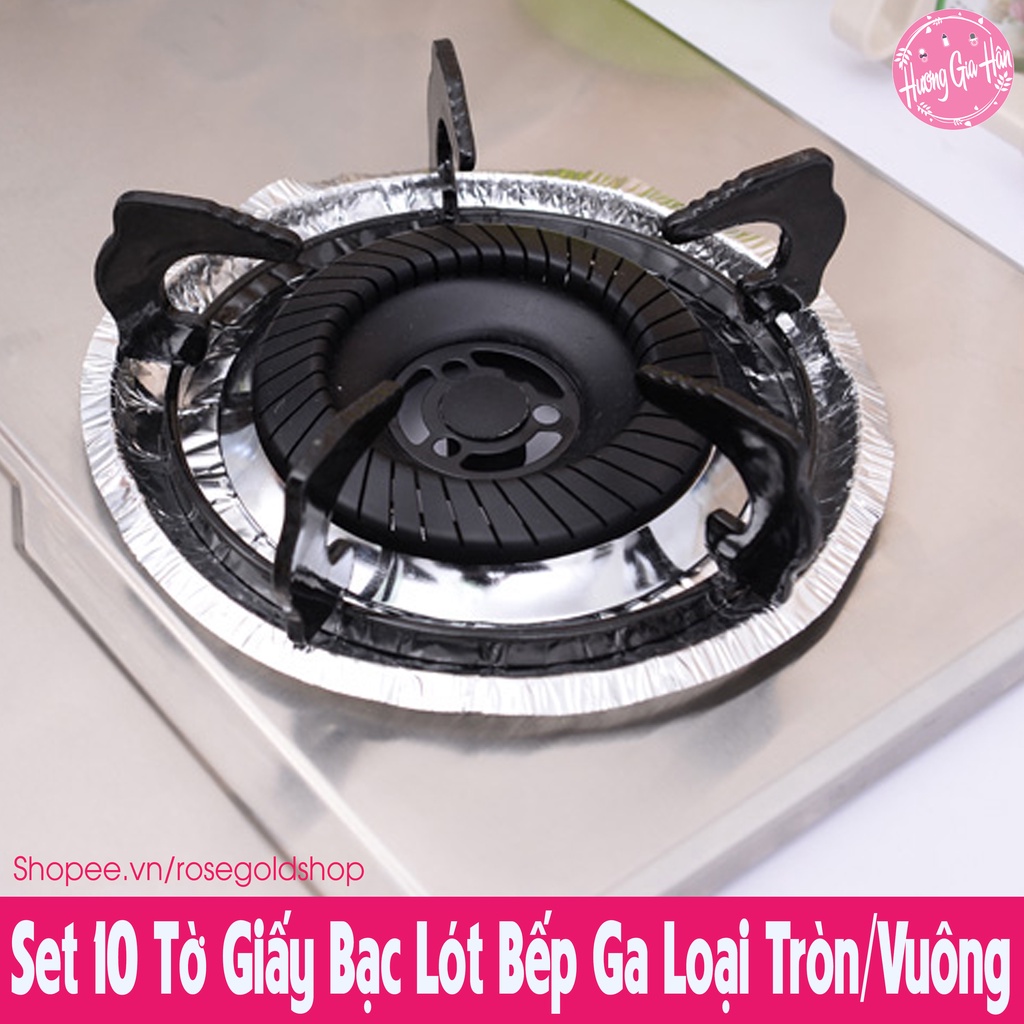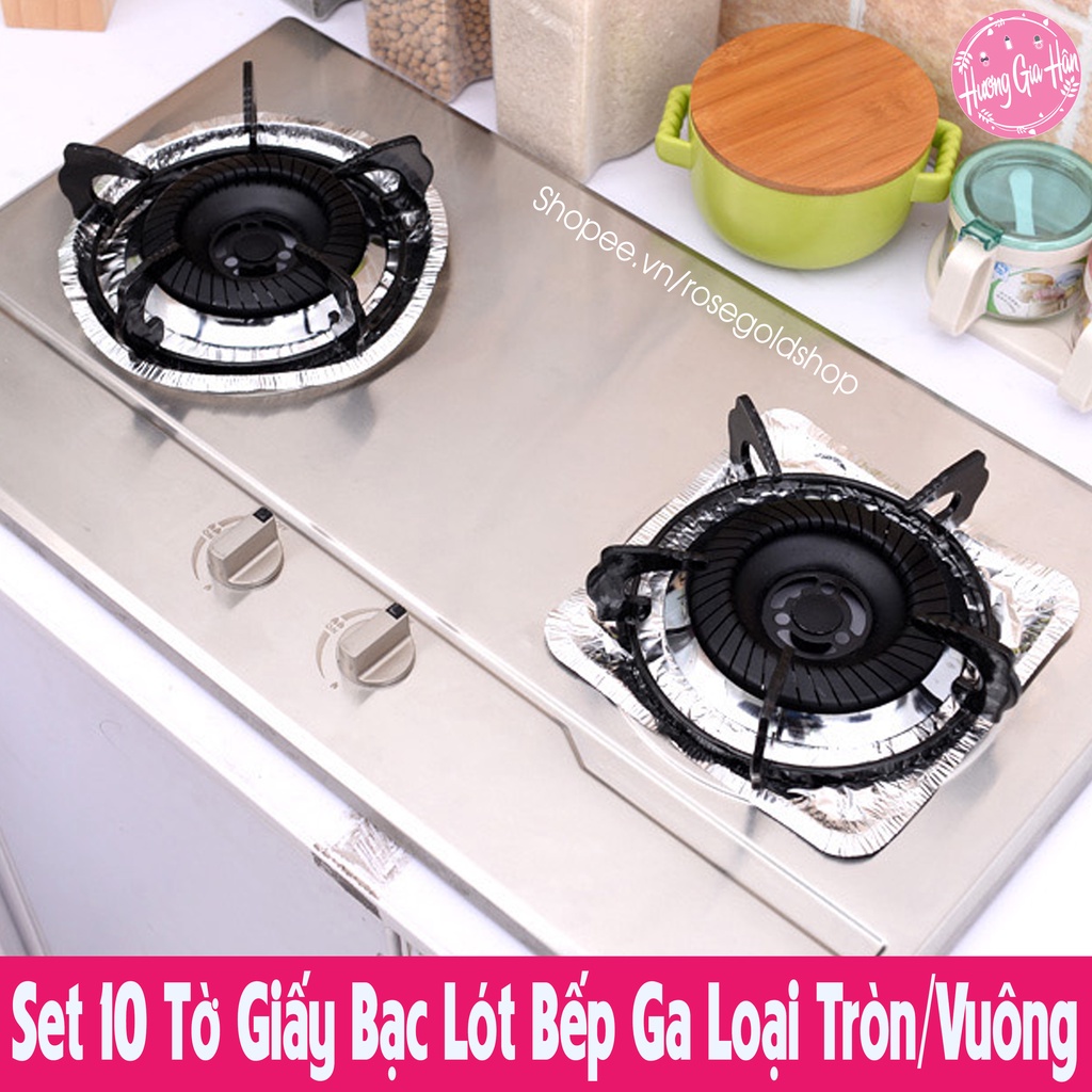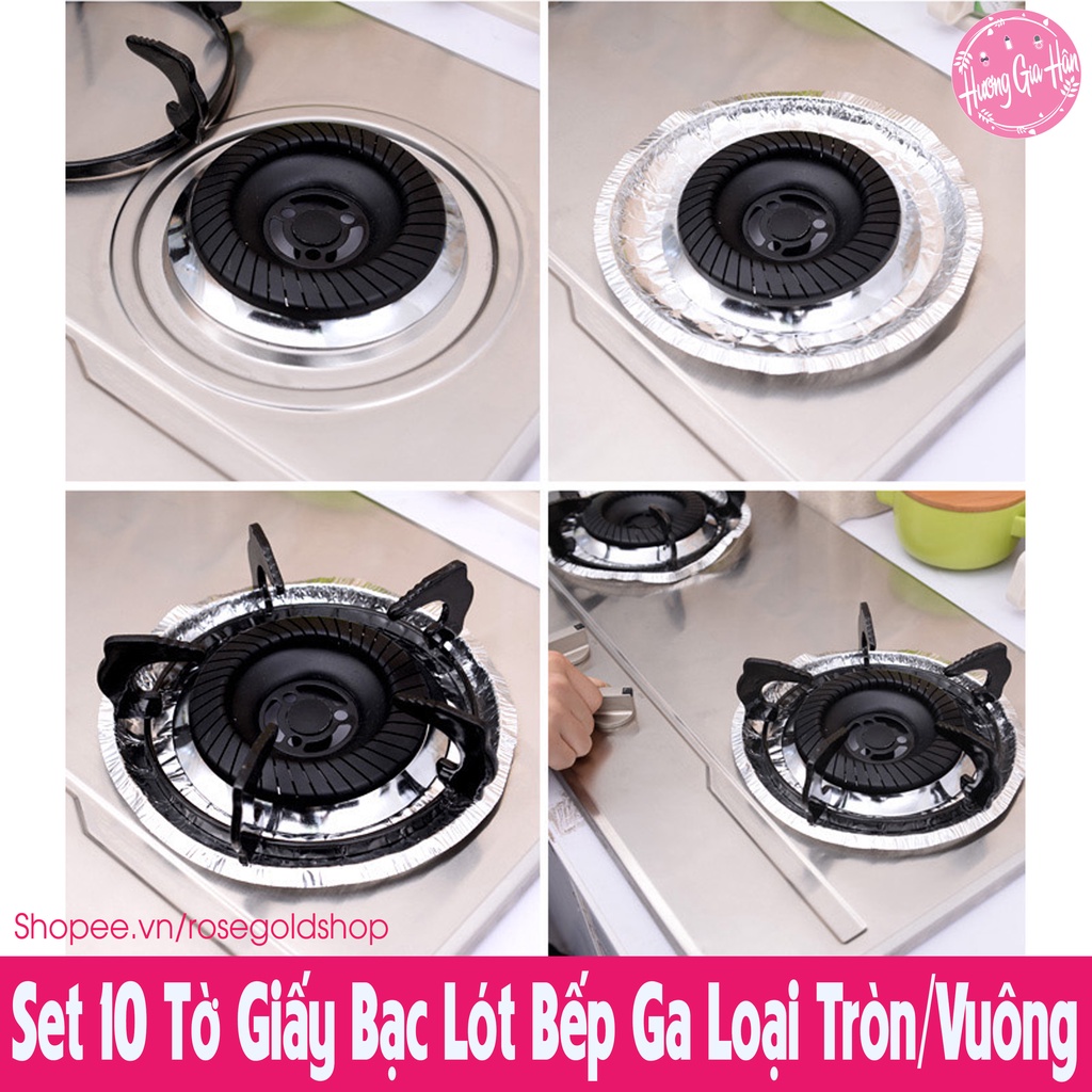Chào mừng bạn đến với Hương Gia Hân shop (Rosegoldshop)Set 10 Tờ Giấy Bạc Lót Bếp Ga Loại Tròn/Vuông, Vừa Với Tất Cả Loại Bếp