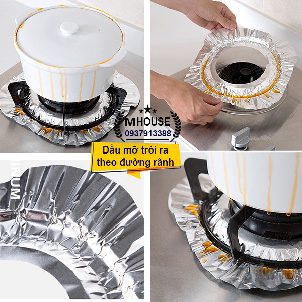 -Miếng giấy bạc lót kiềng bếp gas thiết kế thông minh, vừa vặn với bếp gas nhà bạn.