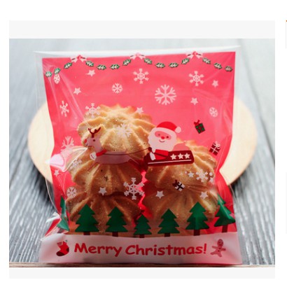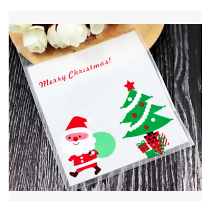 Giới thiệu Set 10 túi kiếng đựng bánh cookiee, quà tặng ông già Noel và tuần lộc xe kéo 10 x 10 cm