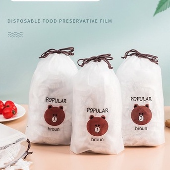 Giới thiệu Set 100 Cái Màng Bọc Thực Phẩm Có Chun Co Giãn Tái Sử Dụng Được Nhiều Lần Đựng Trong Túi Gấu Dây Rút Tiện Lợi