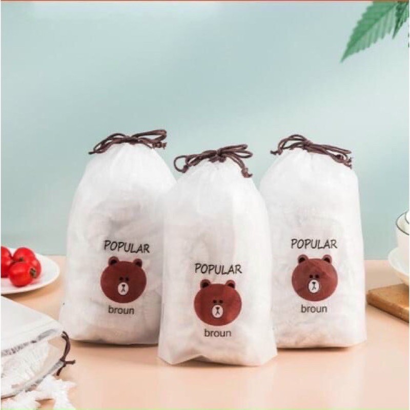 set 100 chiếc màng bọc thực phẩm co giãn siêu dai có chun hình túi gấu tiện ích
