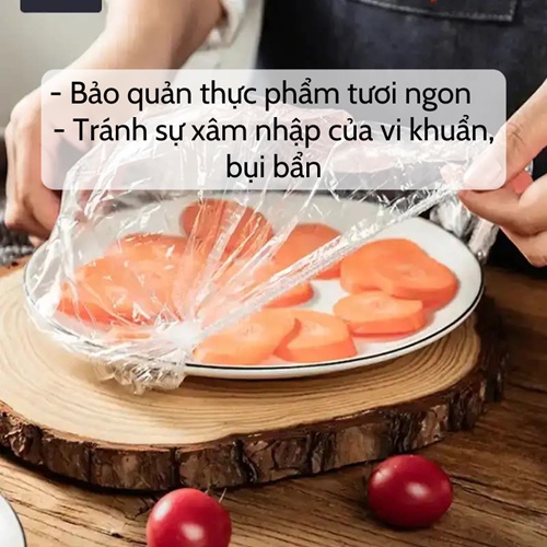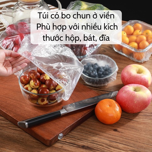- Túi bọc thực phẩm nilon co giãn giúp bảo quản thực phẩm luôn tươi ngon tránh sự xâm nhập của vi khuẩn, bụi bẩn.